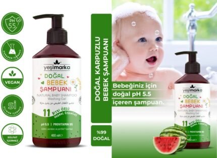 Orijinal fiyat: 375,00₺.275,00₺Mevcut fiyat: 275,00₺.Yeşilmarka Doğal Bebek Şampuanı – Karpuz Kokulu 400 ml